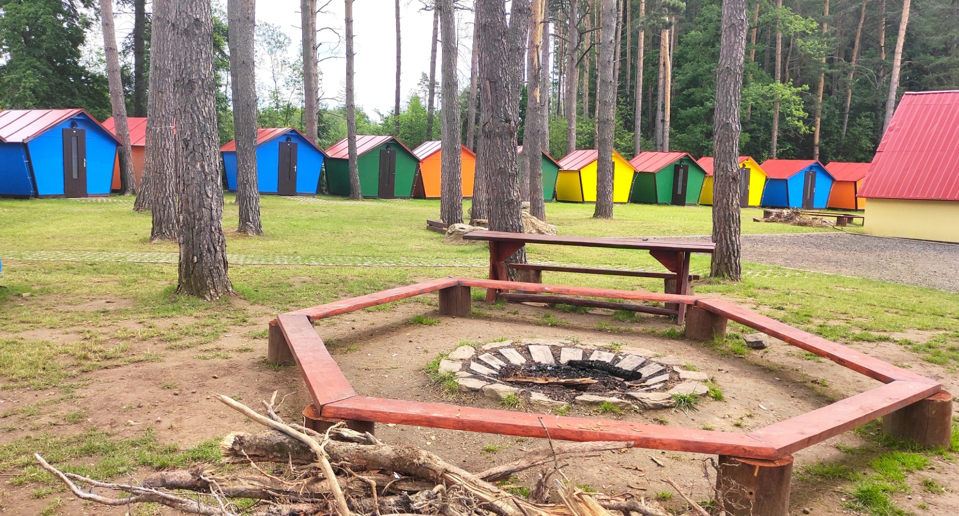 Wooden timbered building designed for larger groups.