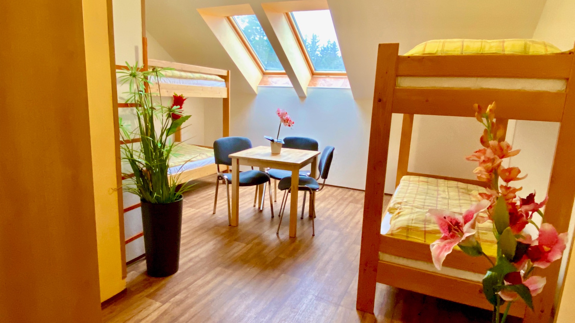 Nabízíme 19 čtyřlůžkových pokojů, 2 třílůžkové pokoje a jeden dvoulůžkový pokoj. Celkový počet lůžek je 84, celkový počet lůžek vč. přistýlek formou paland: 126.